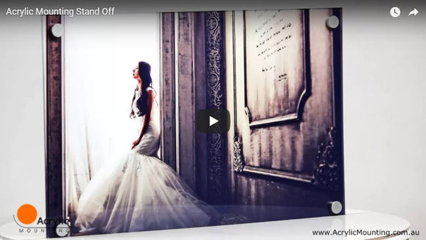 This Acrylic Mounting Standoff is 40 x 60 cm . This size is perfect for all types of images such as wedding photos, family or single portraits, random images or natural or holiday photos. Please ensure your image is in proportion for this size, so you do not have to crop the image. The Acrylic Mounting you are ordering comes ready to hang on the wall on a 4.5 mm laser cut clear Perspex with with 4 holes to install the provided 4 aluminium matt silver stand off bolts.